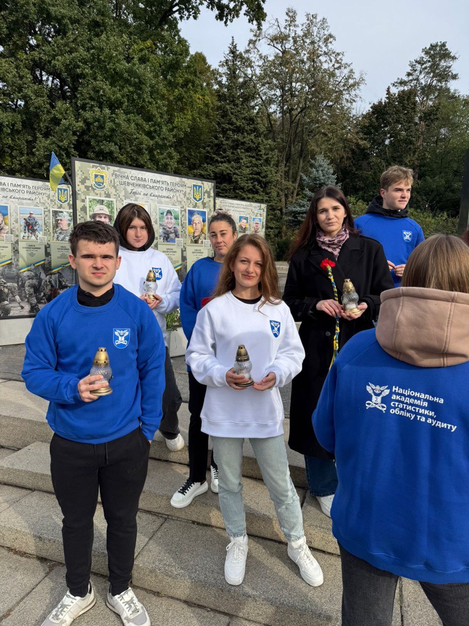 ✨Сьогодні 1 жовтня здобувачі освіти Фахового коледжу бізнесу та аналітики та Національної академії статистики, обліку та аудиту долучилися до вшанування наших Героїв – захисників і захисниць України.